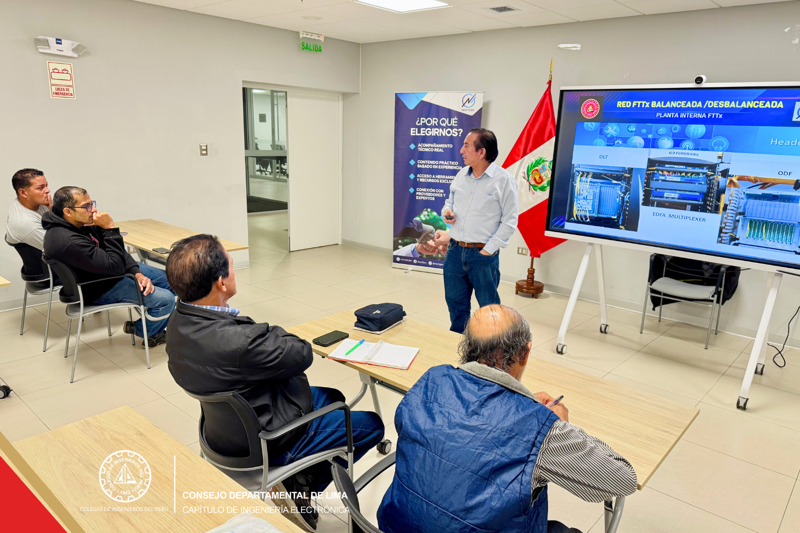 Lima, 26 de mayo de 2025 – El Colegio de Ingenieros del Perú – Consejo Departamental Lima, fue sede del Taller Seminario: “IMPLEMENTACIÓN DE PEXT FTTx BALANCEADA Y DESBALANCEADA”, organizado por el Capítulo de Ingeniería Electrónica en colaboración con la empresa Nextgen.