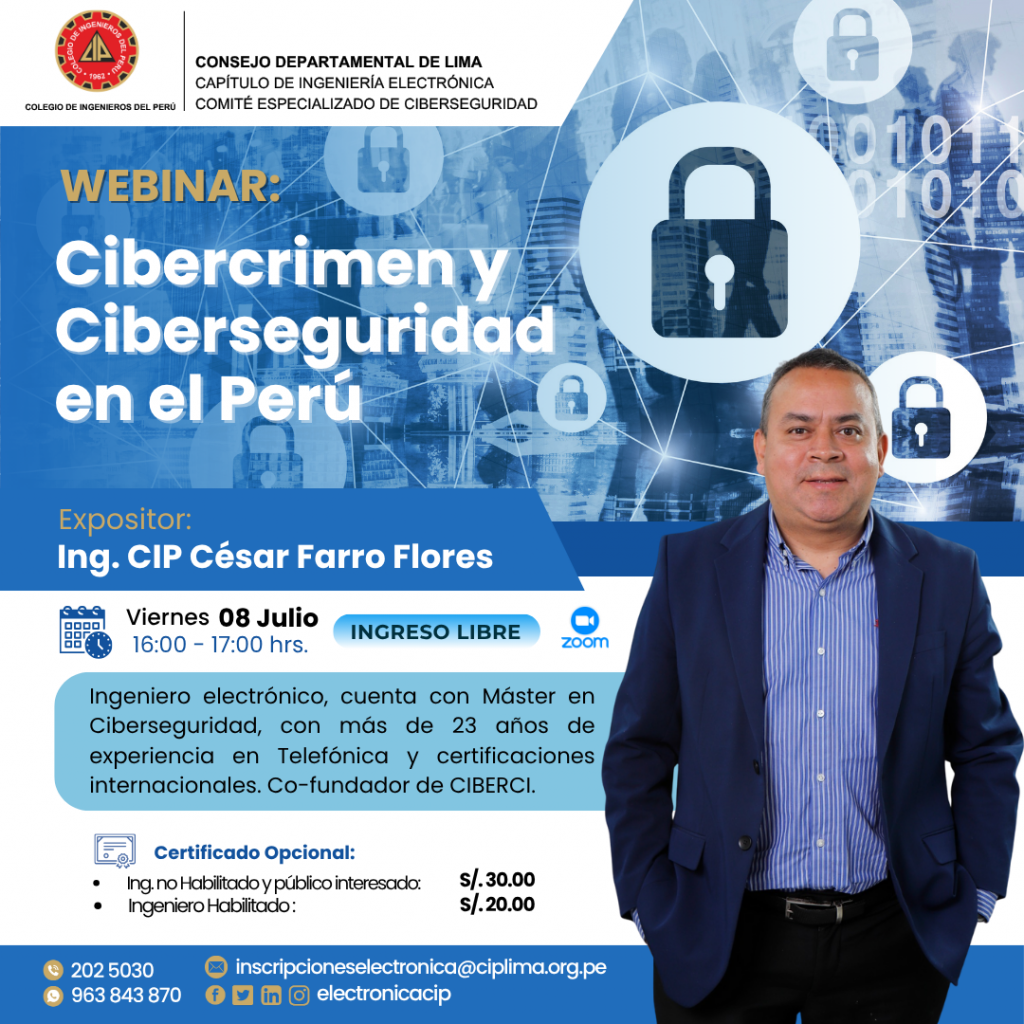 08 de Julio – Webinar:“Cibercrimen y Ciberseguridad en el Perú”