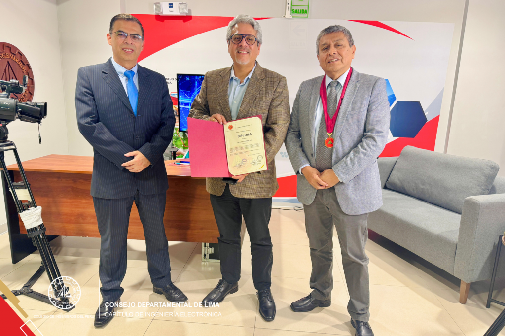 El encuentro concluyó con un acto de reconocimiento al invitado, a cargo del Ing. CIP Freddy Ortiz, Secretario del Capítulo de Ingeniería Electrónica, quien destacó la relevancia de su aporte profesional y académico en beneficio del gremio y de la sociedad.