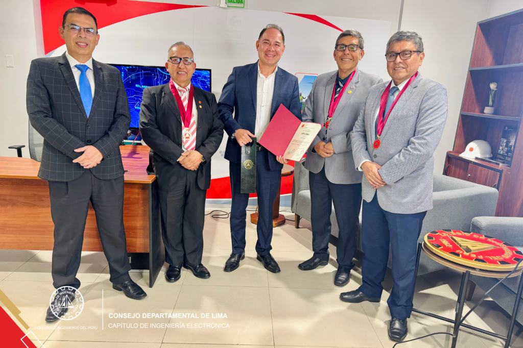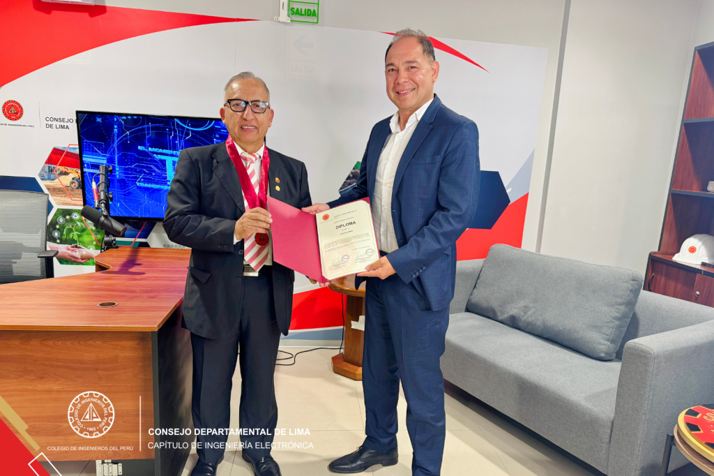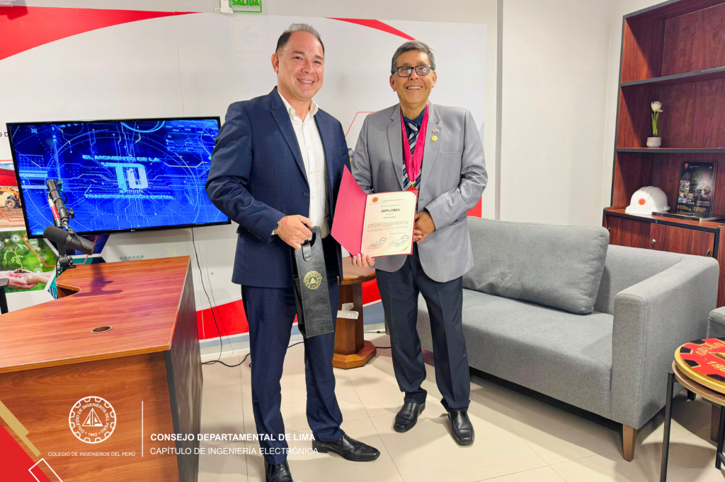 La entrevista concluyó con un acto de reconocimiento al invitado, a cargo del Ing. CIP Wilfredo Fanola, Presidente del Capítulo, Ing. CIP Augusto Jáuregui, Vicepresidente del capitulo y el Ing. CIP Freddy Ortiz, Secretario del Capítulo de Ingeniería Electrónica, quien subrayó el valor de su aporte profesional y académico en beneficio del gremio y de la sociedad.