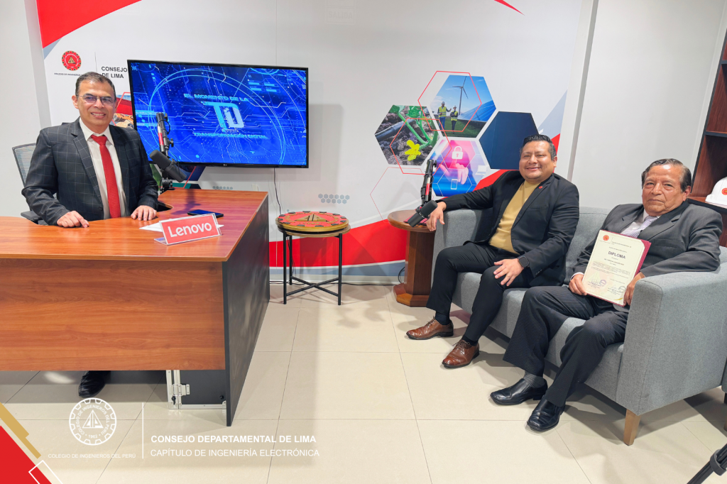 La conducción estuvo a cargo del Ing. CIP Oswaldo Pelaes, directivo del Capítulo, quien sostuvo un diálogo con el Ing. CIP Wilmer Azurza Neyra, Presidente del Comité de Inteligencia Artificial, y el Ing. CIP Fabricio Canales Ríos, Secretario del mismo comité, ambos del Capítulo de Ingeniería Electrónica del CIP CD Lima.