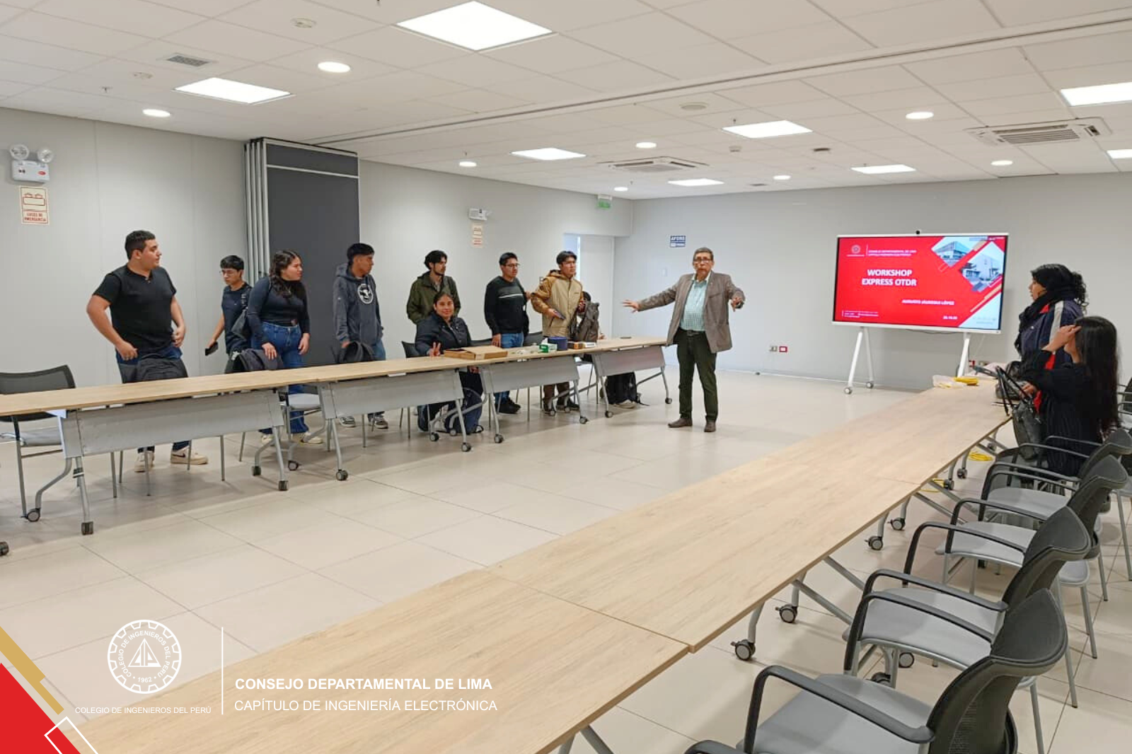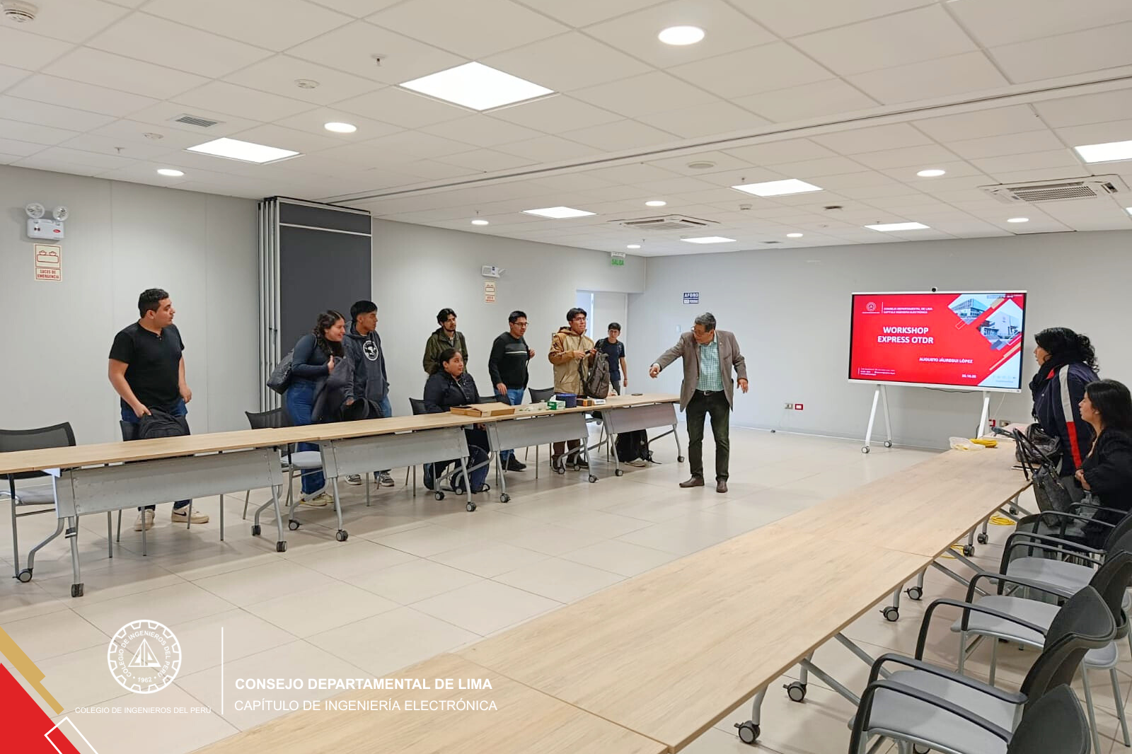 El pasado sábado 25, el Capítulo de Electrónica del Colegio de Ingenieros del Perú realizó un Workshop Express sobre el uso del OTDR, dirigido a estudiantes de Ingeniería de Telecomunicaciones.