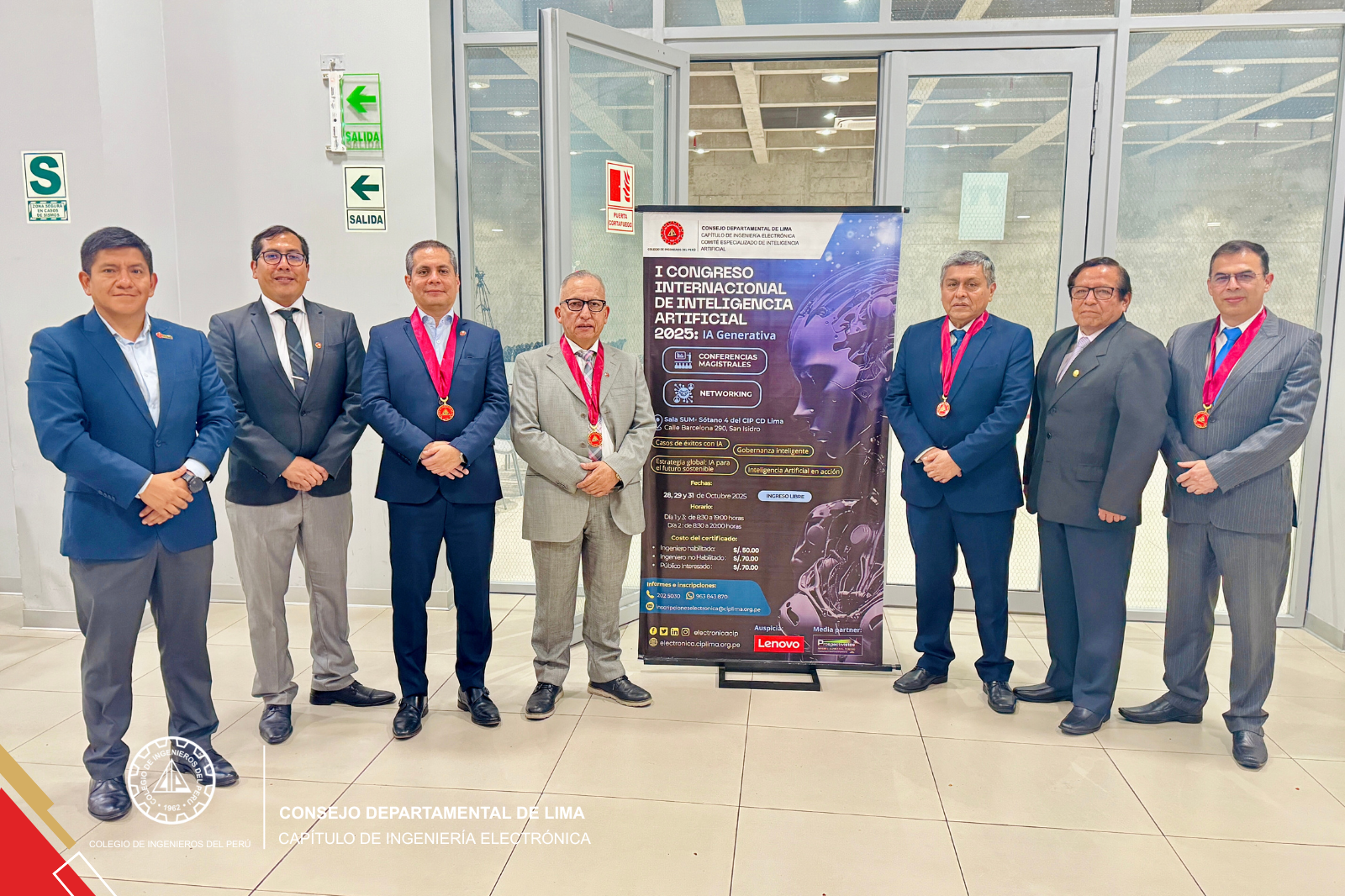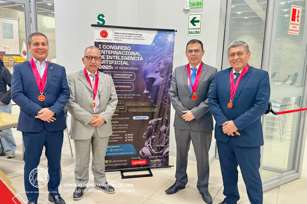 San Isidro, 28 de octubre de 2025. – En las instalaciones del Colegio de Ingenieros del Perú – Consejo Departamental de Lima (CIP CD Lima) se inauguró con gran éxito el Ⅰ Congreso Internacional de Inteligencia Artificial 2025 – IA Generativa, evento organizado por el Capítulo de Ingeniería Electrónica del CIP CD Lima, a través de su Comité Especializado de Inteligencia Artificial, presidido por el Ing. CIP Wilmer Azurza.