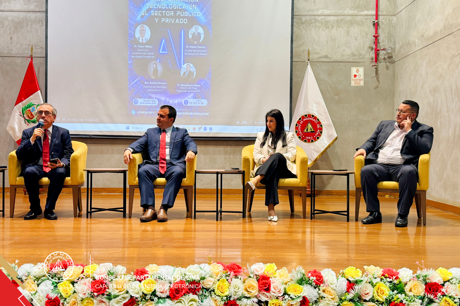 El diálogo fue enriquecido por las intervenciones del Ing. CIPDennis Zárate Torres (Presidente del Comité de Smart Cities CIE CIP Lima), Ing. CIP Christian Chee Cucalón (Directivo del Capítulo de Electrónica) y Ing. CIP José Cotos Espinoza (Coordinador del Comité de IA CIP), quienes abordaron los retos en la formación de talento y la necesidad de programas de capacitación adaptados a la era de la IA generativa.