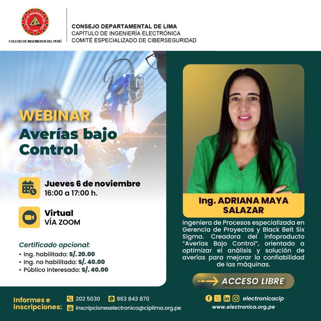 👋🏻 El 𝗖𝗮𝗽𝗶́𝘁𝘂𝗹𝗼 𝗱𝗲 𝗜𝗻𝗴𝗲𝗻𝗶𝗲𝗿𝗶́𝗮 𝗘𝗹𝗲𝗰𝘁𝗿𝗼́𝗻𝗶𝗰𝗮 𝗱𝗲𝗹 𝗖𝗜𝗣 𝗖𝗗 𝗟𝗶𝗺𝗮, a través de su 𝗖𝗼𝗺𝗶𝘁𝗲́ 𝗘𝘀𝗽𝗲𝗰𝗶𝗮𝗹𝗶𝘇𝗮𝗱𝗼 𝗱𝗲 𝗖𝗶𝗯𝗲𝗿𝘀𝗲𝗴𝘂𝗿𝗶𝗱𝗮𝗱, invita a participar del 𝘄𝗲𝗯𝗶𝗻𝗮𝗿: