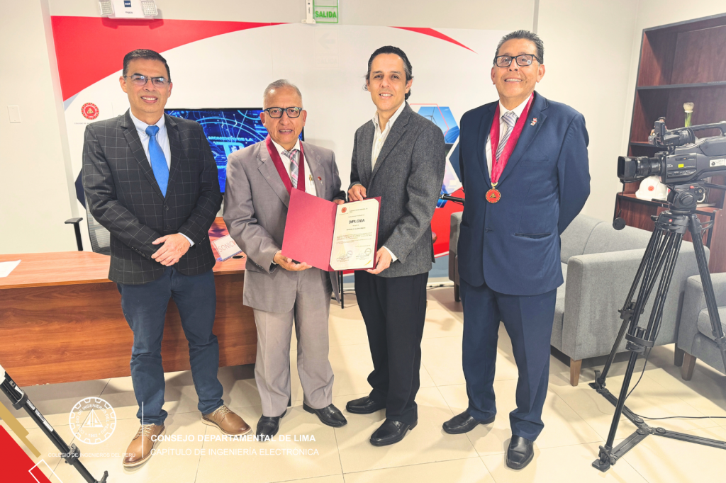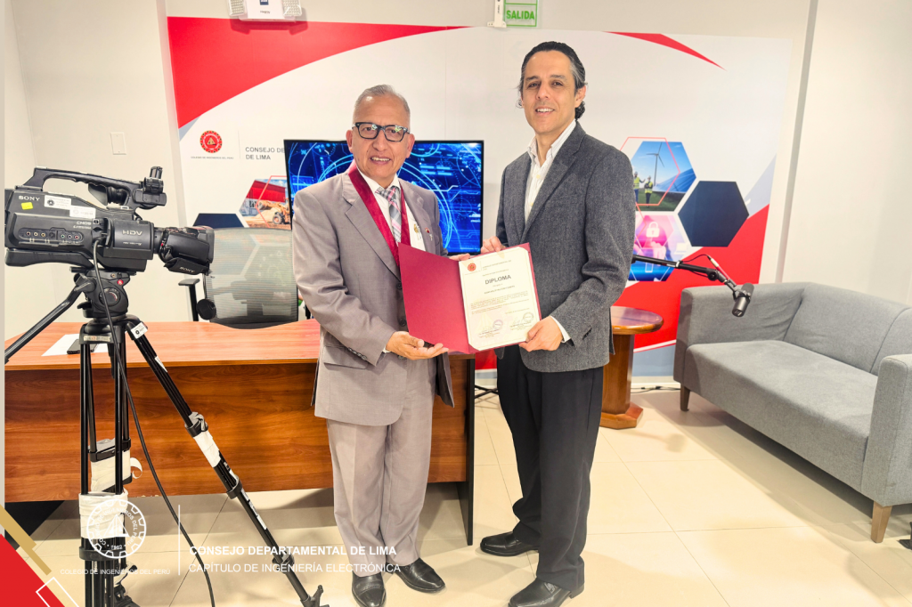 El programa concluyó con un acto de reconocimiento al invitado, a cargo del Ing. CIP Wilfredo Fanola, Presidente del Capítulo de Ingeniería Electrónica y del Ing. CIP Augusto Jauregui, Vicepresidente del Capítulo de Ingeniería Electrónica, quien destacó la importancia de fomentar la cultura de innovación y de fortalecer las capacidades técnicas y estratégicas de los profesionales del país.