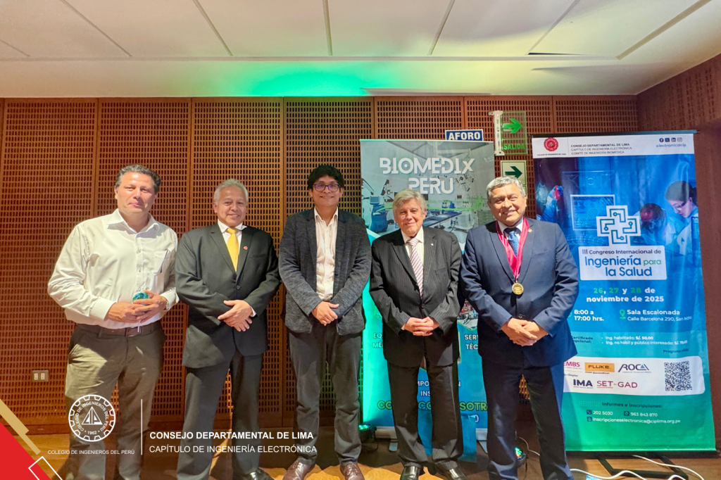 San Isidro, 28 de noviembre de 2025. El día de hoy se llevó a cabo la ceremonia de clausura del III Congreso Internacional de Ingeniería para la Salud, evento organizado por el Capítulo de Ingeniería Electrónica del Consejo Departamental de Lima, a través de su Comité Especializado de Ingeniería Biomédica. Esta edición reunió a destacados profesionales nacionales e internacionales, consolidándose como un espacio académico clave para la actualización y el fortalecimiento del sector salud desde la ingeniería.