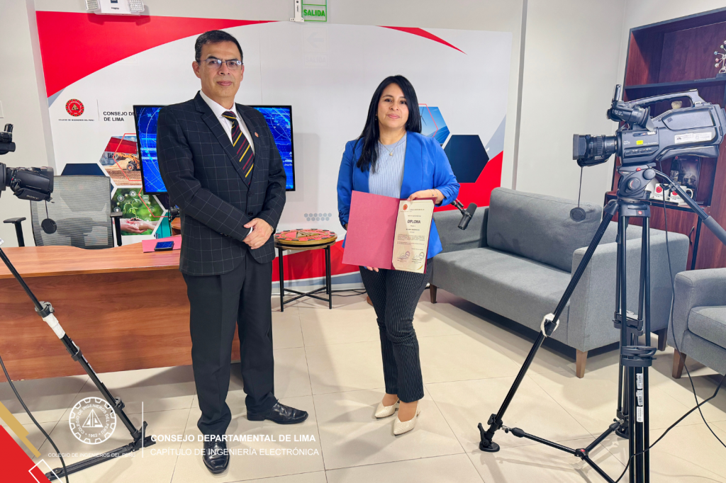 La edición concluyó con un acto de reconocimiento a la invitada, a cargo del Ing. CIP Freddy Ortiz, Secretario del Capítulo de Ingeniería Electrónica del CIP CD Lima, en reconocimiento a su valiosa contribución al fortalecimiento del ecosistema de la confianza digital en el Perú.