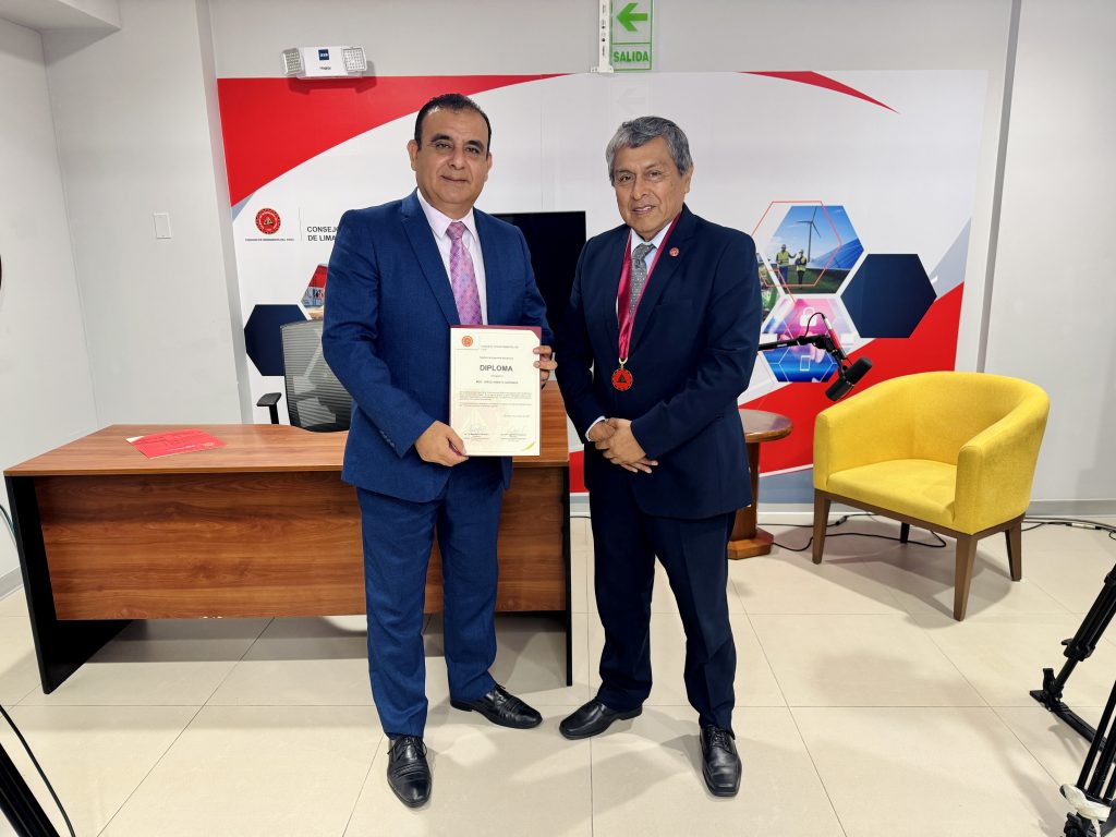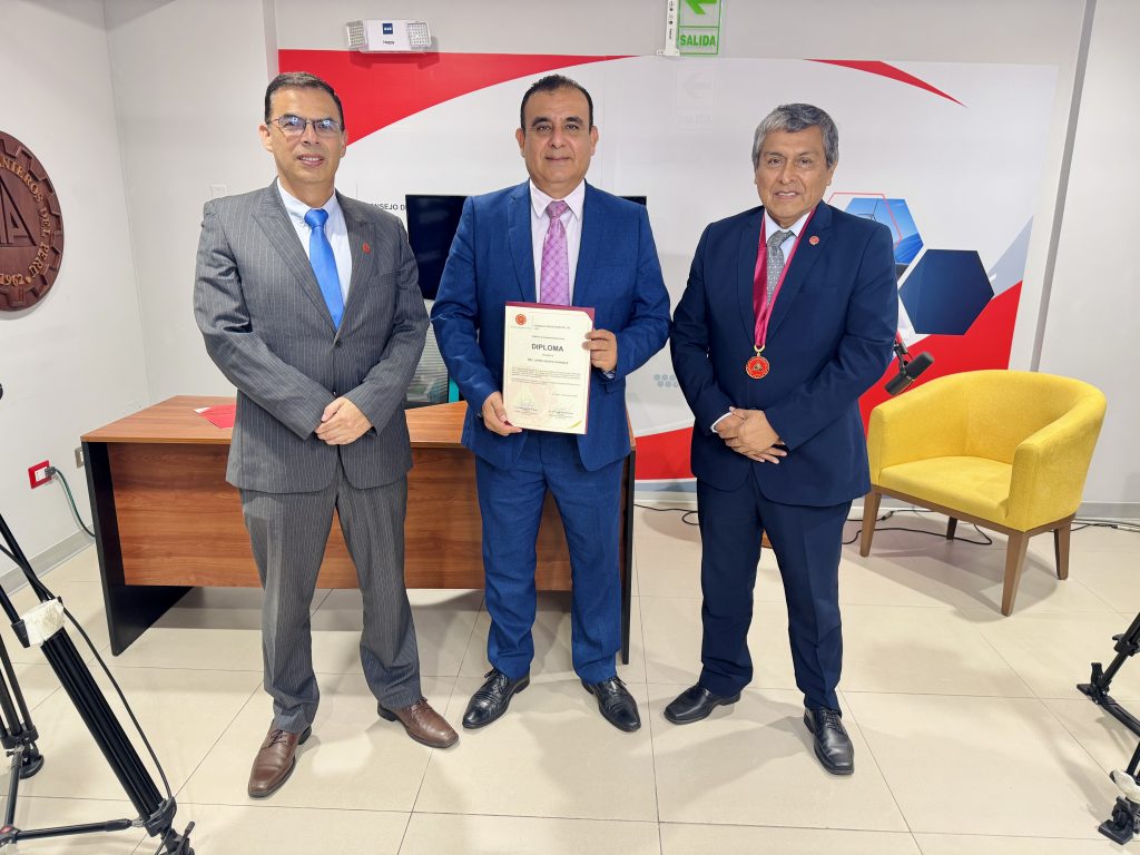 Al cierre del programa, se realizó un reconocimiento institucional al invitado, entregado por el Ing. CIP Freddy Ortiz, secretario del Capítulo, en mérito a su aporte al análisis de la seguridad digital y la ciberdefensa.