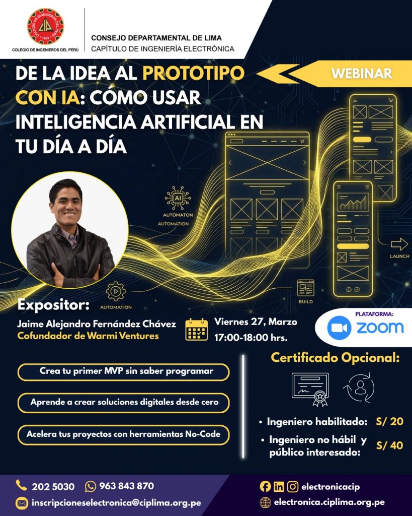 👋🏻 El Capítulo de Ingeniería Electrónica los invita a participar del Webinar «De la idea al prototipo con IA: Cómo usar inteligencia artificial en tu día a día» .